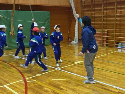 次は長なわです。団結力が試される長なわ、学年ごとに声を掛け合って取り組んでいます。