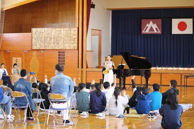 会津演奏家連盟の皆さんが来校し、クイズや歌を交えながら、素晴らしい演奏を披露してくださいました。