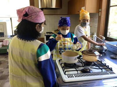 丁寧に自分たちで作ったご飯とみそ汁は、お腹のすいた子どもたちにとって、とってもおいしかったようです