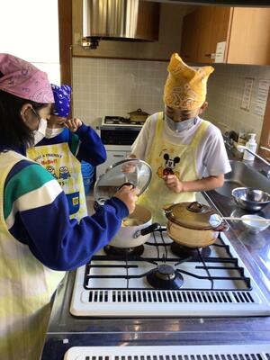 事前に作り方を学んでいるので、始まる前は、「おいしくできるかな。」とわくわくしていた5年生。