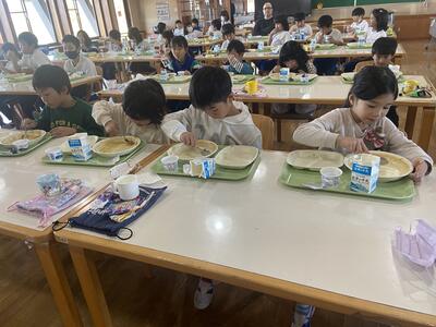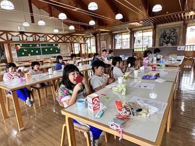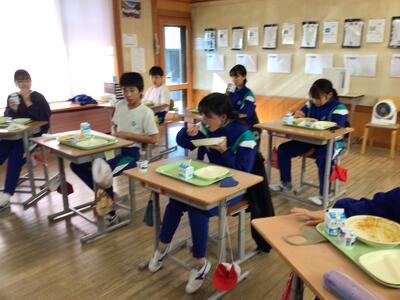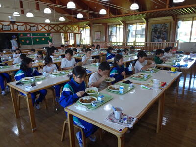 待ちに待った給食が再開し、温かく、美味しく食べられることに感謝しながら給食をいただきました。今日は1~4年生は集会室で、5・6年生は各教室で食べましたが、来週からは数年ぶりの全校給食となります。今から楽しみです♪