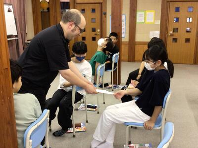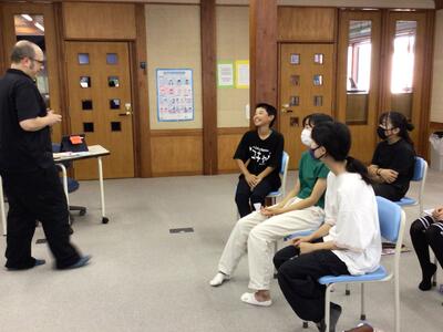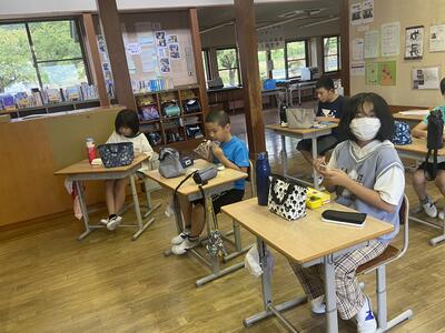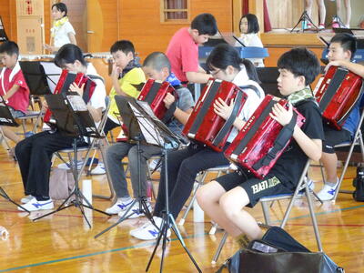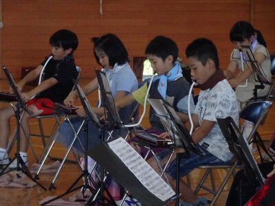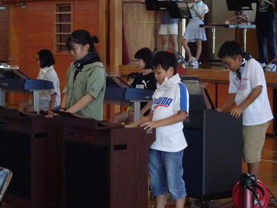 この暑さで負けそうになっていましたが、用意した保冷剤を首筋に当てると「ああ、気持ちいい」と心の声が・・・。音をそろえようと一生懸命取り組む二小の子どもたち、すばらしいです!