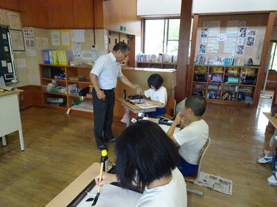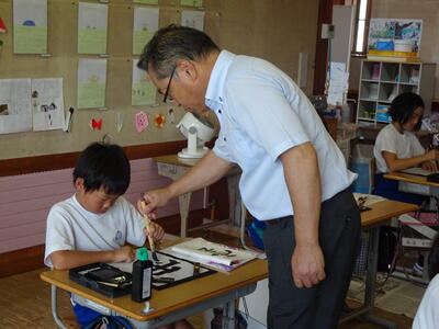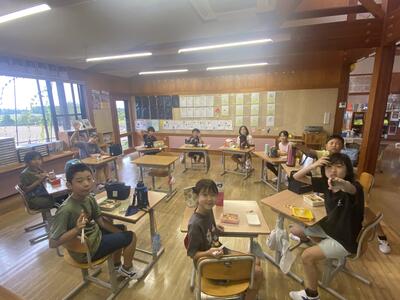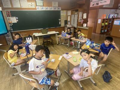 4年ぶりに、全校児童が揃っての校内水泳記録会が行われました。上学年の泳ぎを見るのが初めてだった下学年の子たちは、ダイナミックな泳ぎに驚いていました。また、下学年の泳ぎに上学年の子たちが大きな声で声援を送ってくれたことが、下学年の子たちにとって大きな力となりました。