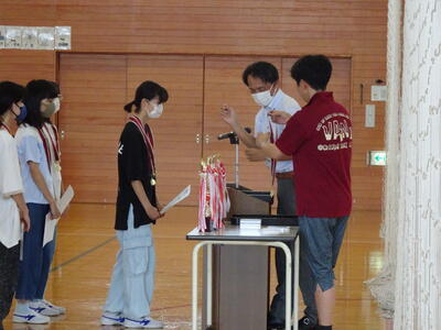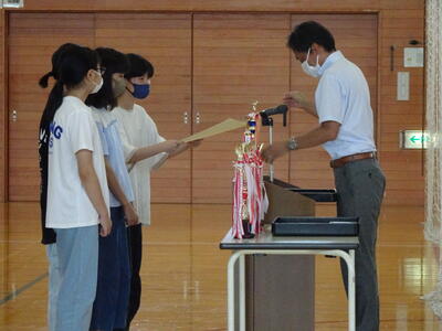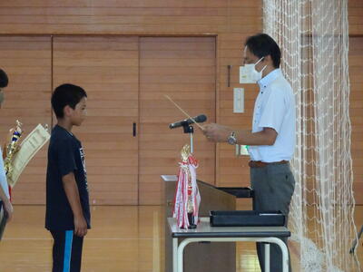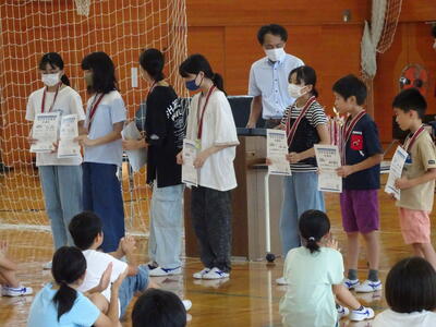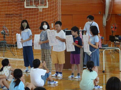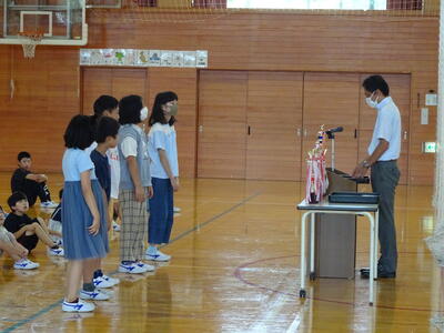 今日の朝は、「理科作品展」「磐梯町水泳交歓会」「校内水泳記録会」の表彰が行われました。