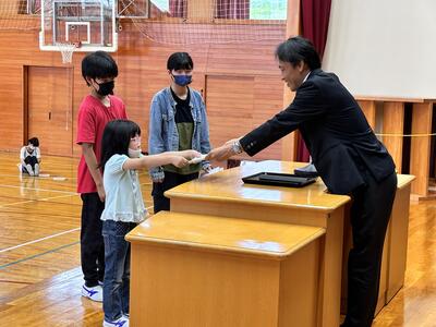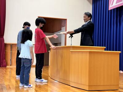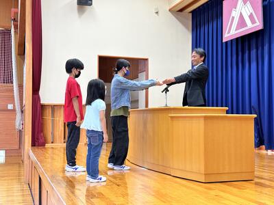 今日の全校朝の会でよい歯の表彰が行われました。校長先生からむし歯がないと、よいことがたくさんあるというお話や、歯磨きをしないと夜の間にむし歯がつくられてしまうことを教えていただきました。講話後、ピッカピカで賞(虫歯や治した歯が1本もない)、キラキラで賞(検診時にすべての歯が治してあった)、そして1年生が全員むし歯のない『よい歯のクラス賞』をもらいました。磐梯二小の子どもたちがこれからも「よい歯」でいられるようしっかり磨いてほしいです。