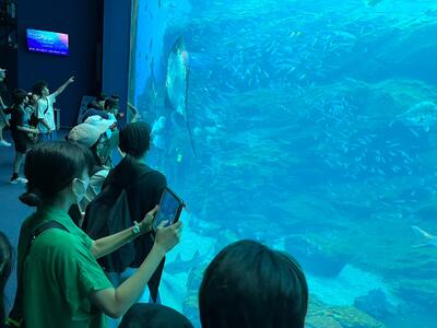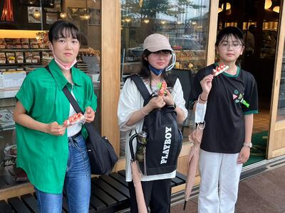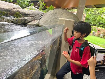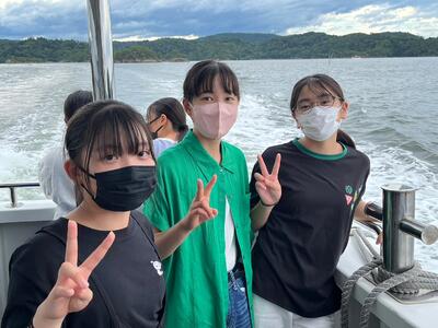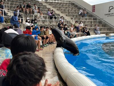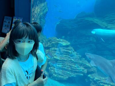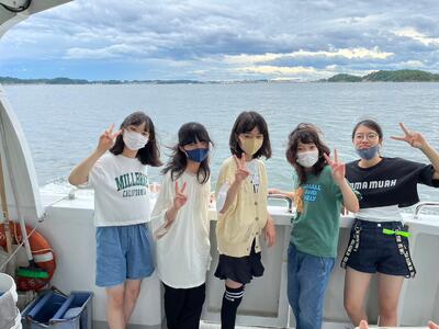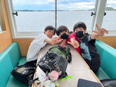 松島湾遊覧船に乗って、塩釜まで向かいました。松島の素敵な景色を甲板で風に吹かれながら見学。気持ちよかったようです。その後、うみの杜水族館へ。イルカショーも、友達と楽しくみることができました。持参したタブレットも活躍しています。