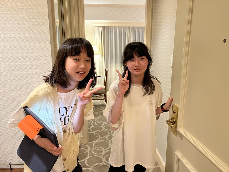 ホテルに到着しました。ゴージャスなホテルで大喜びの様子でした。