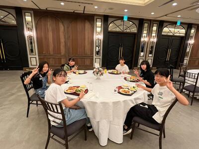 夕食会場にやってきました。仙台名物、牛タンをいただきます。夕食後は、ホテルに向かいます。友達との宿泊も楽しみですね。