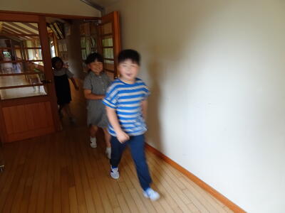 今日は、防犯教室が行われました。校内に不審者が侵入したことを想定した避難訓練です。不審者に扮した警察の方が侵入後、子どもたちは放送をよく聞いて無事に避難することができました。
