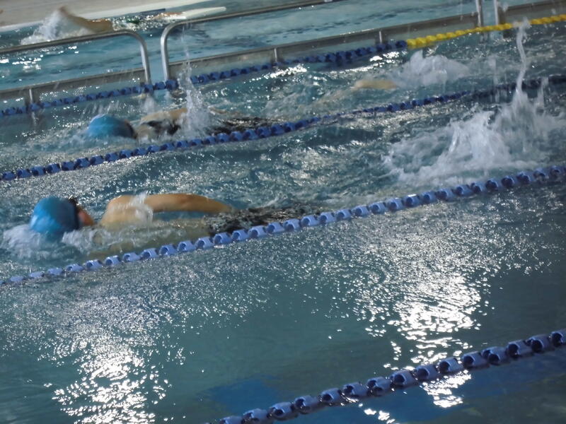 ふれあいセンターのプールを利用して、水泳の学習をがんばっています。