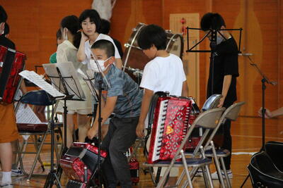自分の場所の確認、楽器や譜面台の準備など、一つ一つ確認しながら進めていきます。