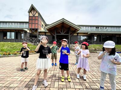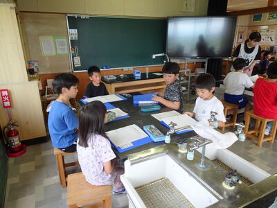 今日は、子どもたちが楽しみにしていた「シャボン玉」と「みずでっぽう」を生活科の時間にやりました。それぞれが準備してきた物で、シャボン玉を作ったり、遠くまで水が飛ぶみずでっぽうを作ったりと楽しい時間を過ごしました。ストローの先をどんなふうにしたらいいのか、大きなシャボン玉はどうやれば作れるのかなどの疑問を友達と考えたり、一人で工夫しながら作り直したりと、ただ楽しいだけでなく考えながら活動することができました。ハンガーを使ってシャボン玉にも挑戦しましたが、なかなか液が付いてくれなく、難しさも感じていました。その点はまたみんなで考えて再チャレンジしたいと思います。曇ってはいたものの、楽しく思いっきり活動が出来た時間になりました。