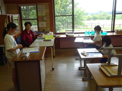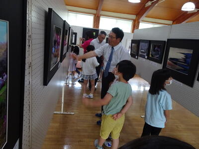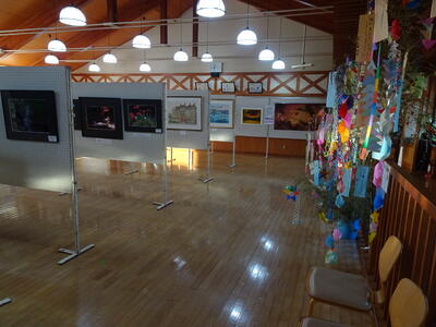 7月5日(水)から7日(金)まで、集会室で絵画・写真展が開催されています。いつもの集会室が大変身!まるで美術館のようです。地域の方にもお越しいただいています。子どもたちがつくった七夕飾りもありますので、たくさんの方に、ぜひご覧いただきたいと思います。