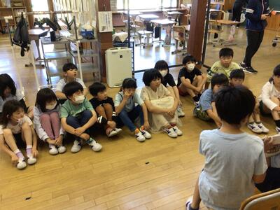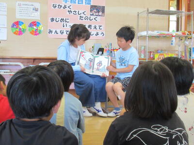 図書委員会の活動では、月に1回、担当の図書委員が、各学年の教室で読み聞かせを行います。