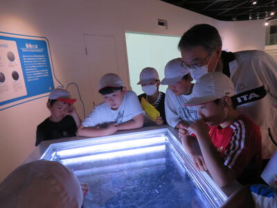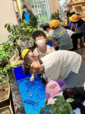 1・2年生は、予定していた南ヶ丘牧場は延期とし、学校で交流活動をしてから出発しました。まず始めに、「アクアマリンいなわしろカワセミ水族館」へ行きました。珍しい魚、カエル、鳥などたくさんの生き物を見ることができました。最後にはカワウソを見たり、魚掴みを体験したりとワクワク、ドキドキがたくさんありました。次に亀ヶ城公園にあるカメリーナで昼食、おやつタイムをとりアリーナで体を動かすことができました。