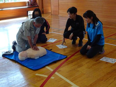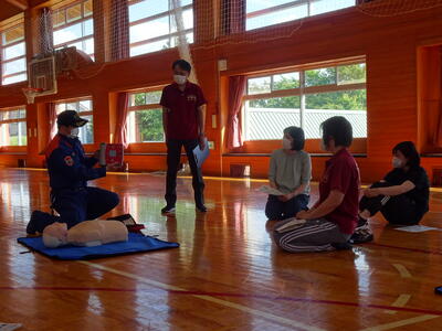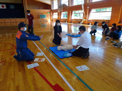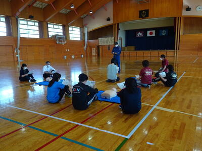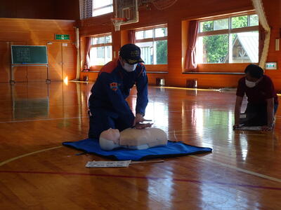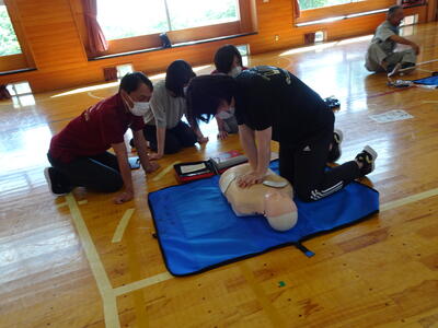 心肺蘇生法の手順を確認したり、胸骨圧迫やAEDの使い方をダミー人形を使って練習したりしました。