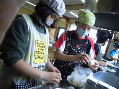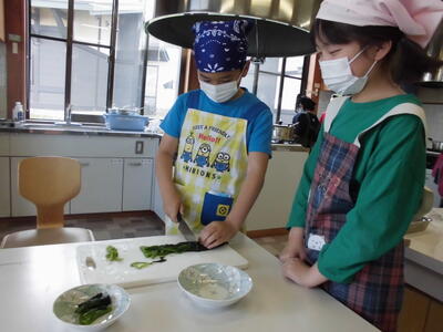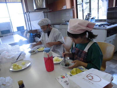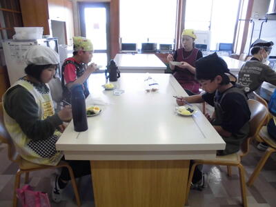 初めて包丁を使う子もいて、ドキドキしながらの調理でしたが、2つの班ともとてもおいしく出来上がりました