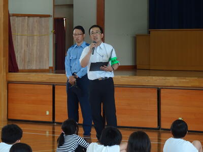警察署の方々から、不審者と出会ったときの対応・日常生活で注意することを教えて頂きました。
