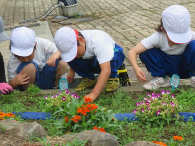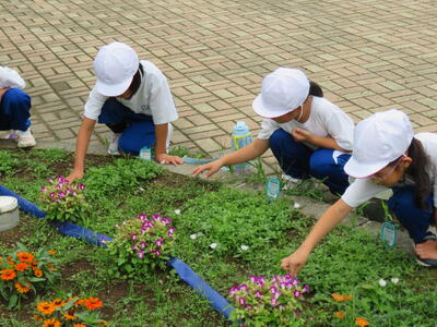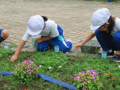 2024年7月8日 12時49分二小には、一人一人のマイ花壇があります。