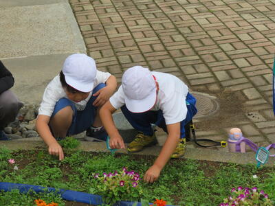 二小には、一人一人のマイ花壇があります。
