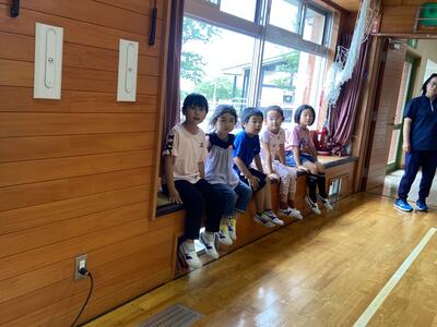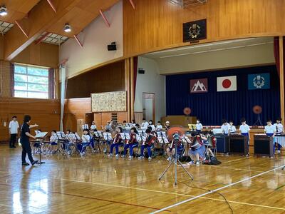 2024年7月9日 16時48分今日は合奏の練習の日。子ども達は体育館に集まりました。全体練習です。1学期中に全体練習ができるのはすばらしいことです。部分練習をした後、曲を全部通しました。