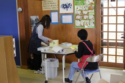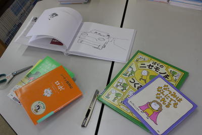 本日は,破損した本の修理や新しい本へのブックカバーの貼り付けを進めてくださいました。