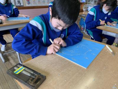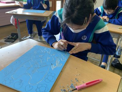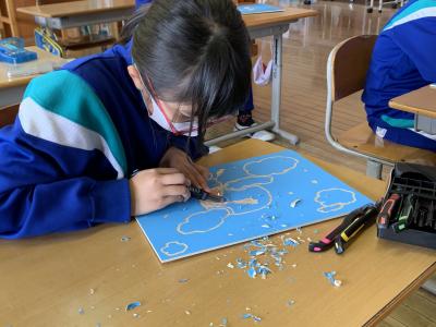 2021年3月12日 16時41分図工では、木版画を行っています。