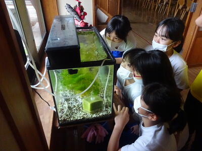 5年生が理科の授業で観察、飼育している「メダカ」です。毎日、毎日えさをやり、観察し続けてきて、今日、ようやく産卵したのです。